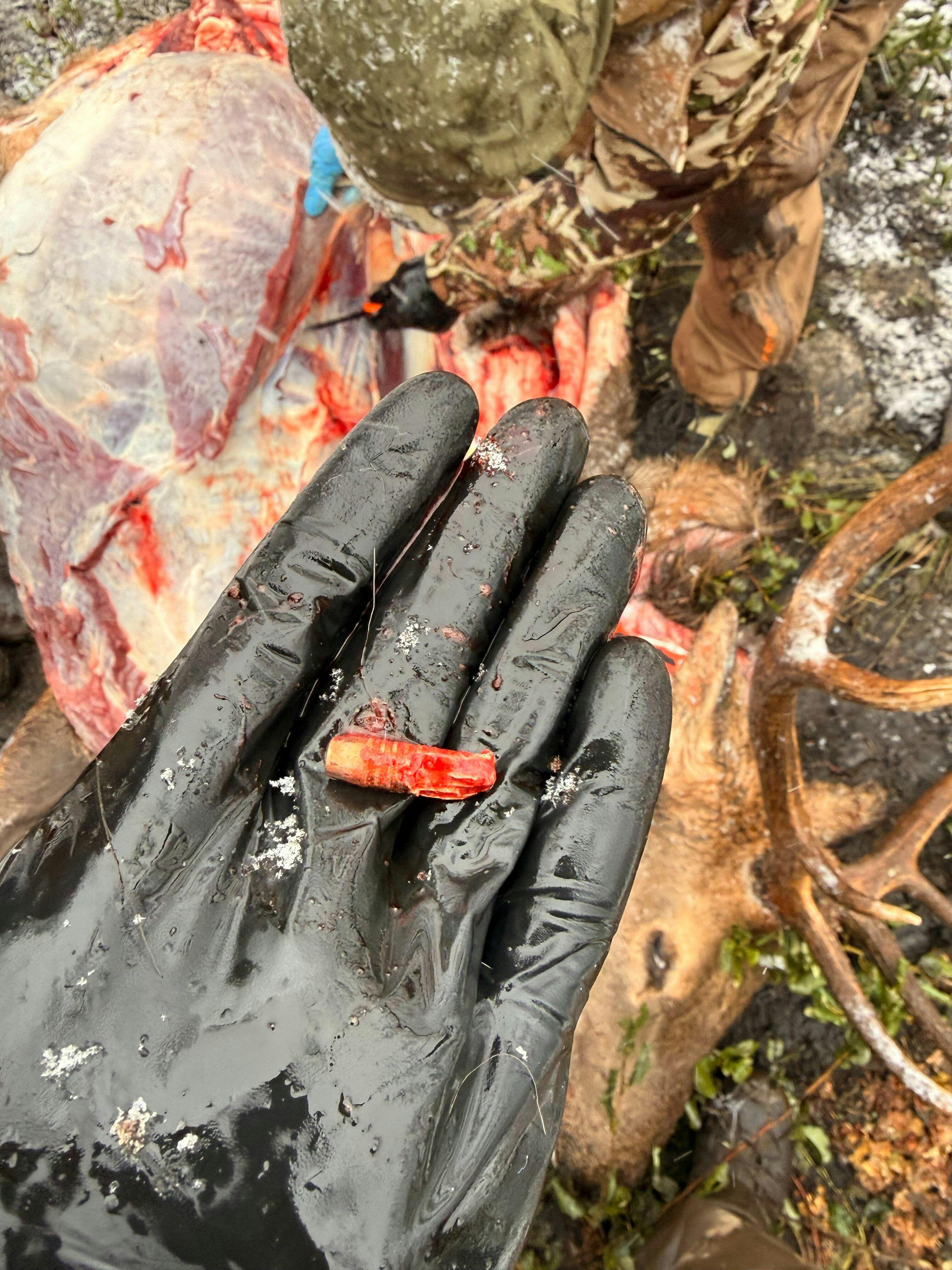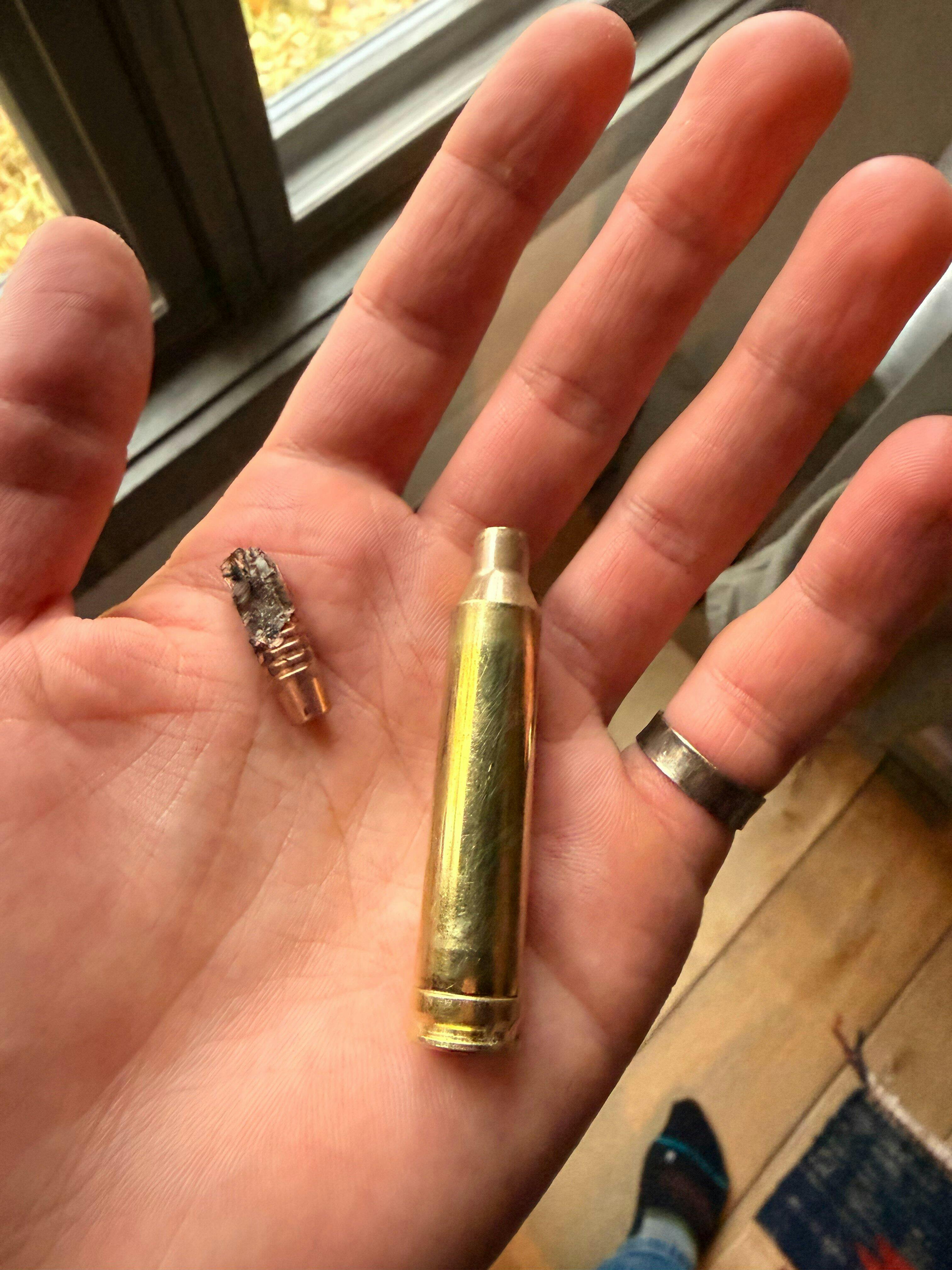 These bullets are awesome, I got a load worked up for my 7 Mag, pushing these 3150 FPS and printing 0.5" groups at 100yds. Conveniently, we spotted this bull through some thick burned timber and I made a single shot on him at 67 yards which hit him in front of the shoulder in his neck and spine, which was the only portion of his body that I could see cleanly. He died right there and didn't take a step. We also found the bullet while quartering the elk, photo attached. The petals came off as advertised and the mass of the bullet travelled through spine and stopped in the other side of his hide.