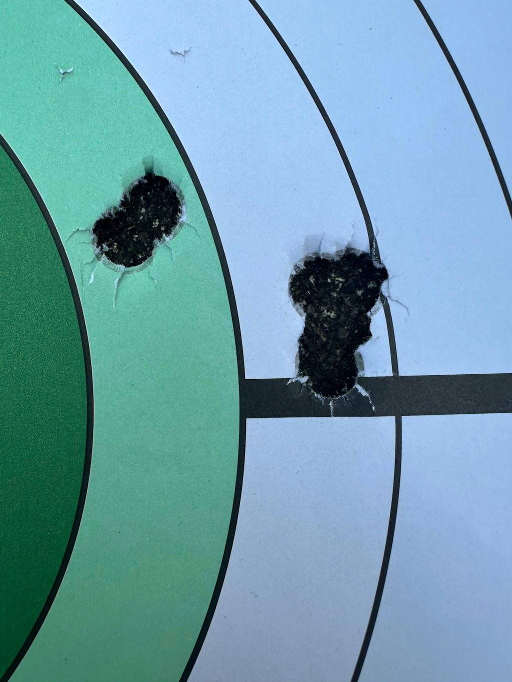 These are the best shooting bullets on the market by far. I will use these from now on. The 2 shots are solid the 4 shots are Raptors at 100yards