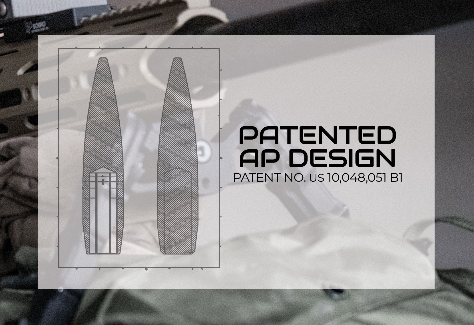 Our patent patented AP design combines a tungsten core for maximum penetration, and our MTAC™ design featuring our patented SealTite™ band. The combination of these technologies not only provides armor piercing penetration, but also provides a bullet that flies more accurately than anything on the market today. Our AP technology can be implemented into any calibers .224-50bmg.